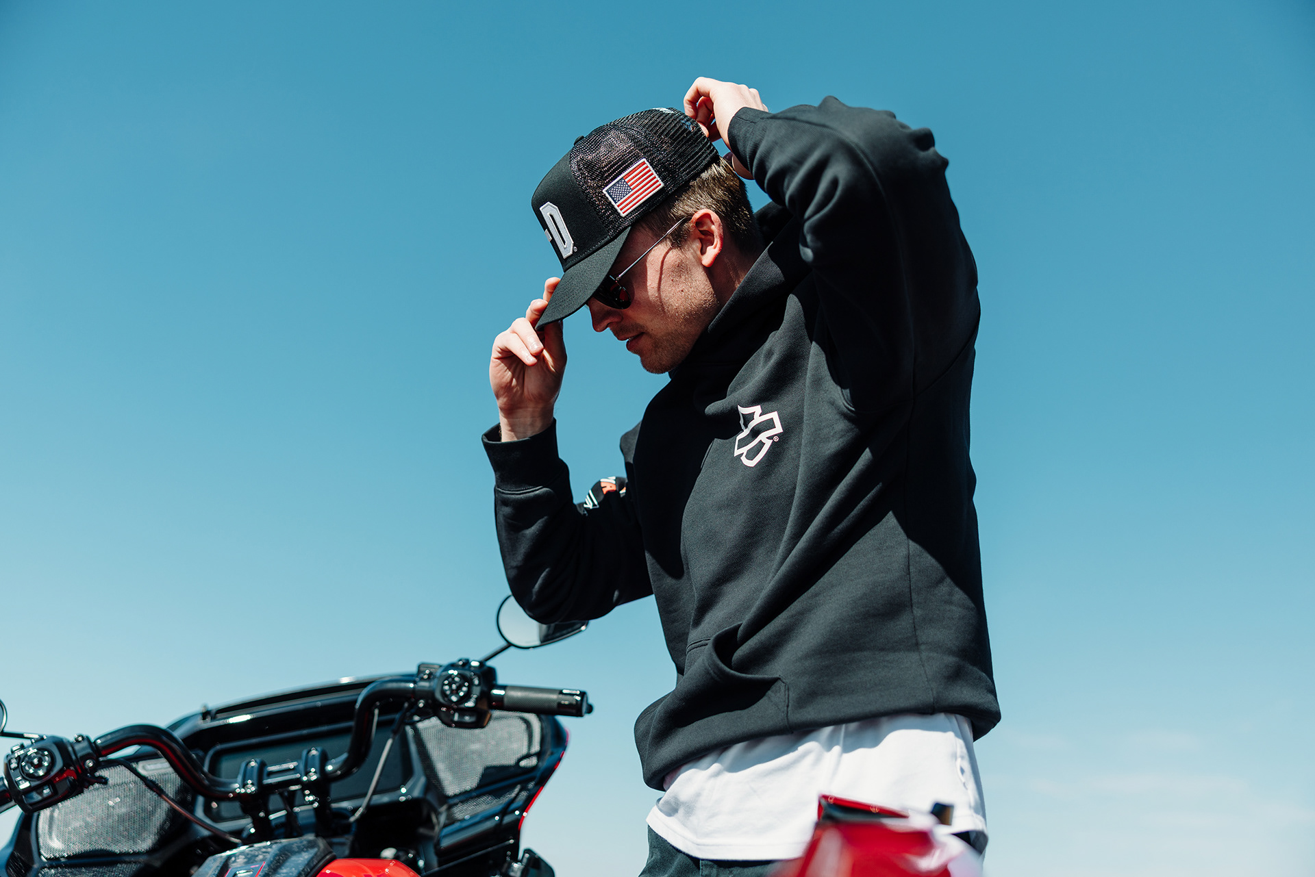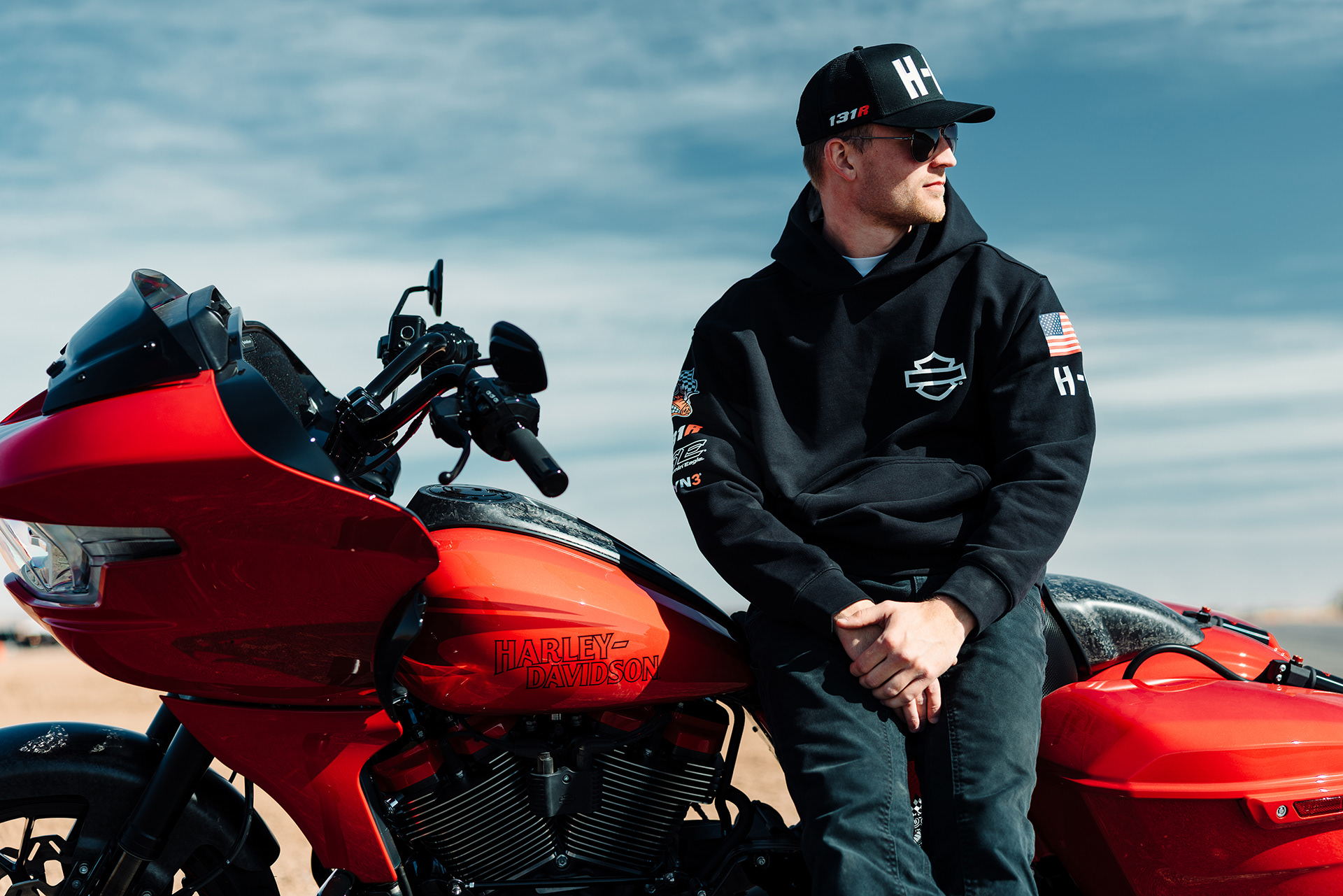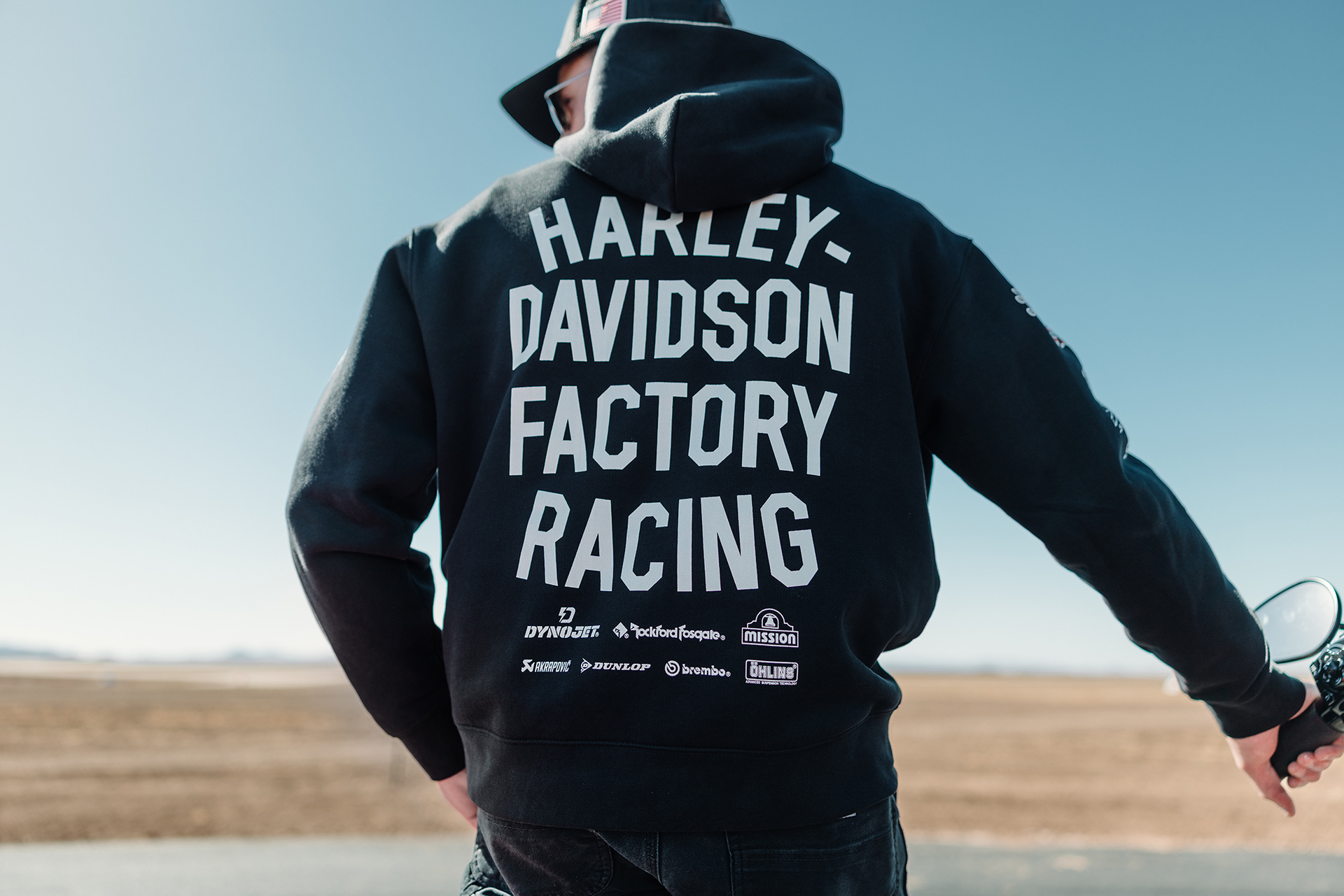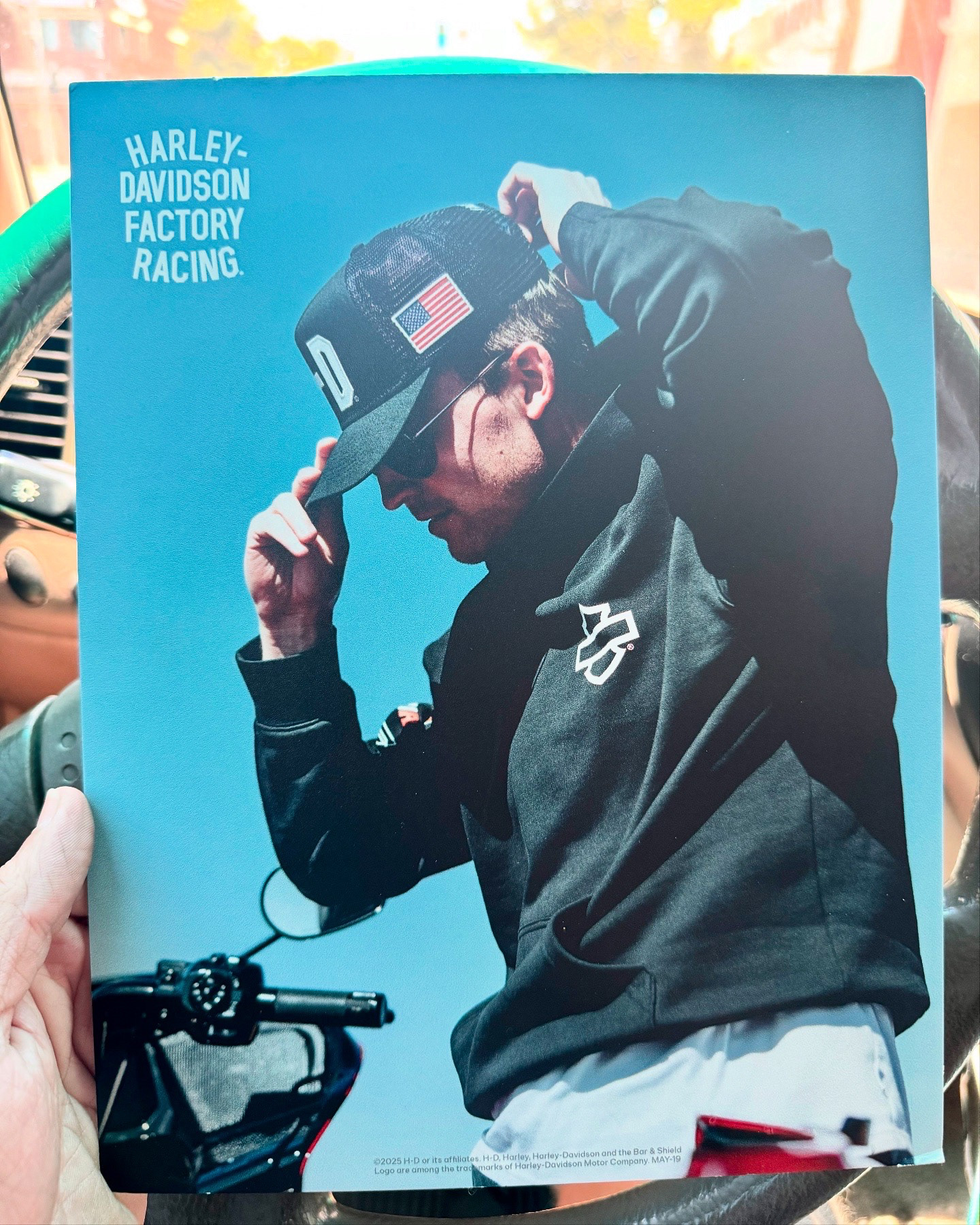 Modeled for Harley-Davidson Factory Racing Team limited merch collection. Shot by the talented Buddy Wilinski. Displayed nationwide at your local H-D dealership.